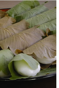 当店自慢の杵つき柏餅。今年も3種類(こしあん・つぶあん・味噌あん)で販売中です。
